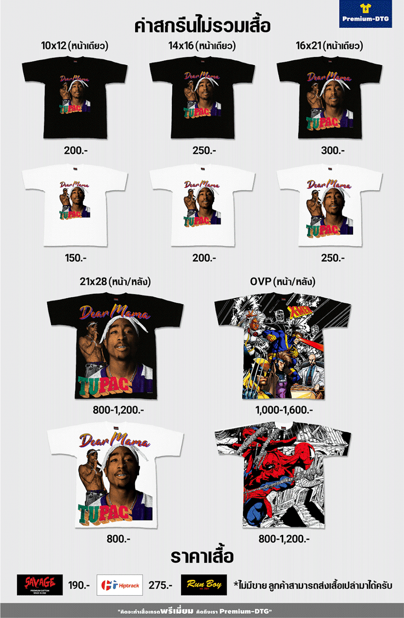 DTG และ DTF ครับ และเราใช้เครื่องพิมพ์คุณภาพสูงในการสกรีนงานให้ลูกค้า