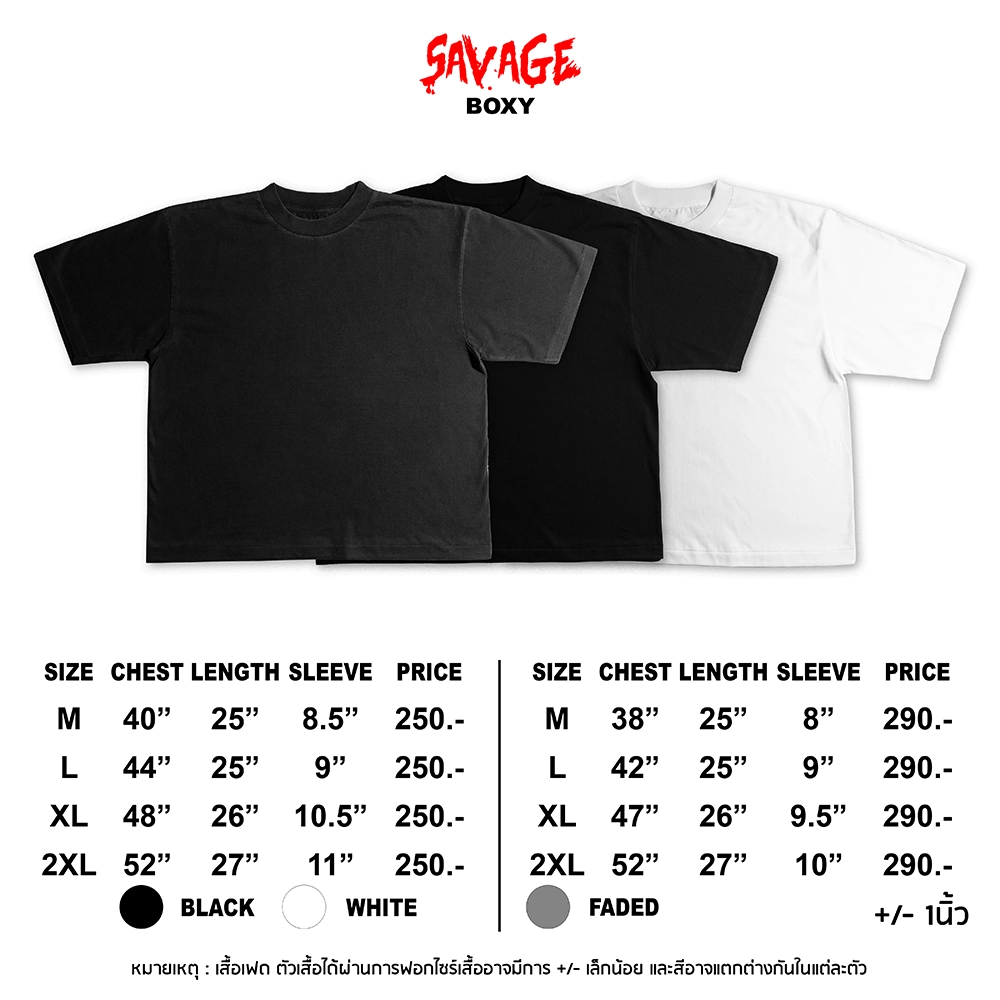 หากคุณกำลังมองหาเสื้อยืดทรงใหม่ที่แตกต่างจากเสื้อยืดทั่วไป SAVAGE BOXY คือเสื้อยืดทรง “บ็อกซี่” (Boxy) ที่มาแรงที่สุดในหมู่คนทำแบรนด์และสายสตรีท ด้วยดีไซน์ คอกลมทรงตรง ปลายแขนตกพอดีลำแขน ให้ลุคแฟชั่นแบบ effortless ที่ใส่แล้วดูดีโดยไม่ต้องพยายาม
